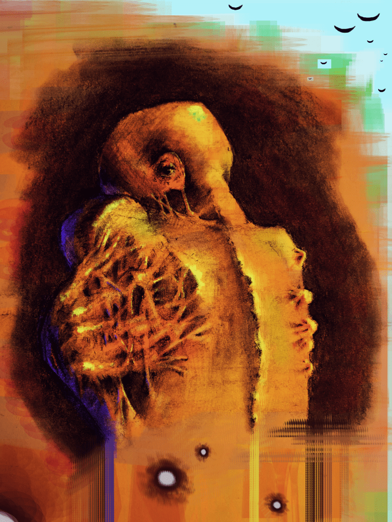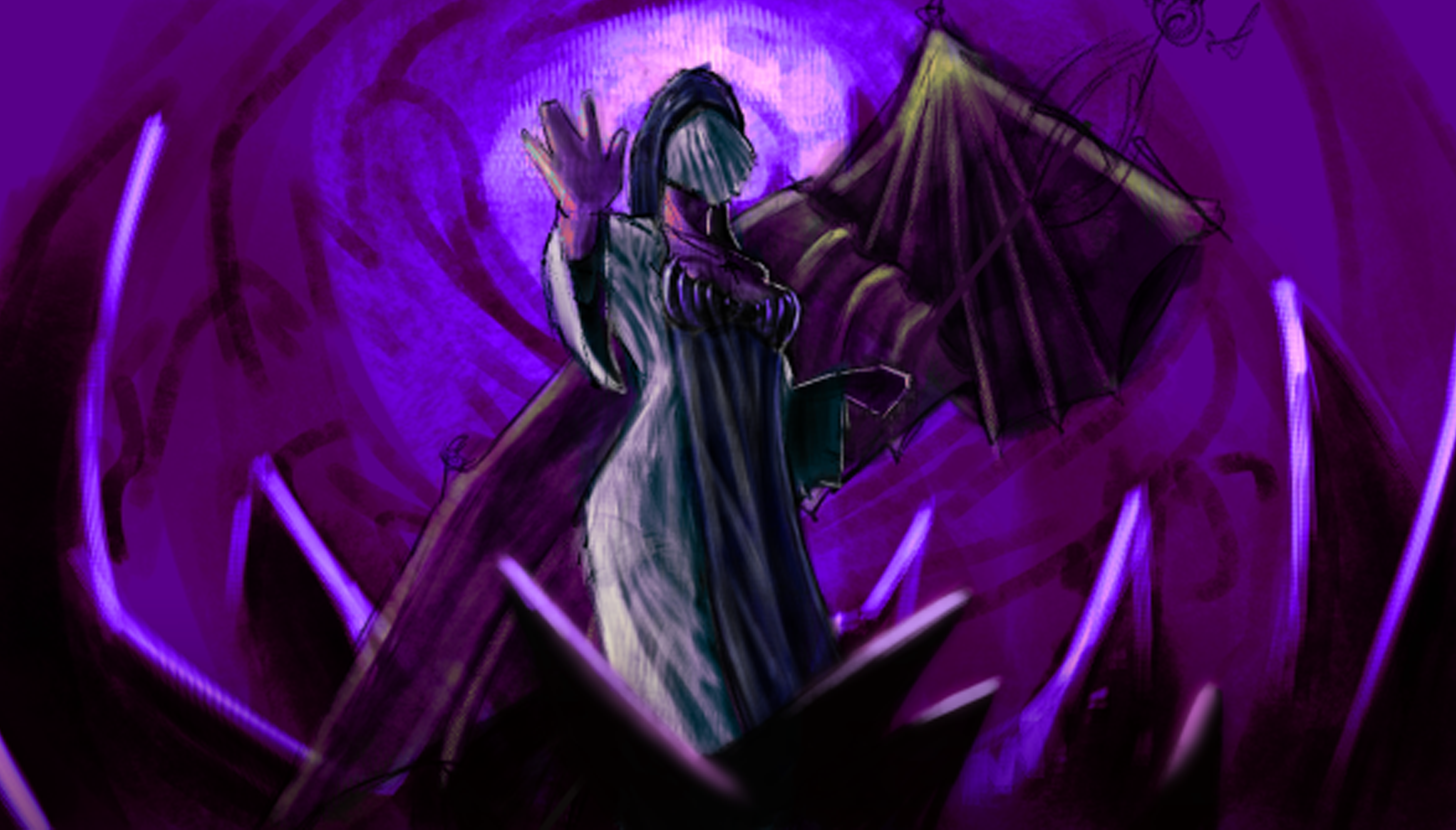 commission for a rough conceptual art of a clients OC to show the created character in a “void-like” environment.
